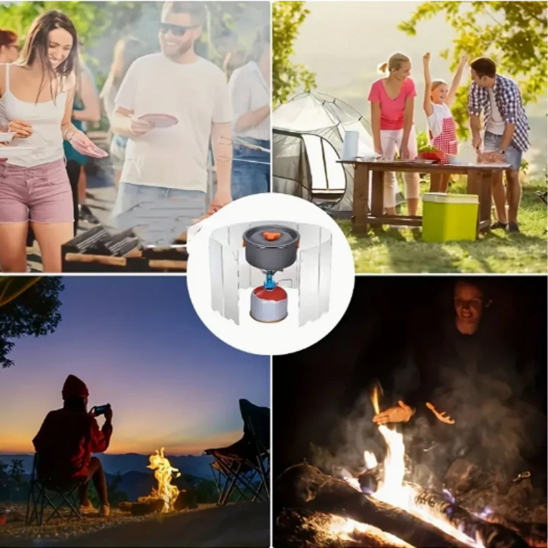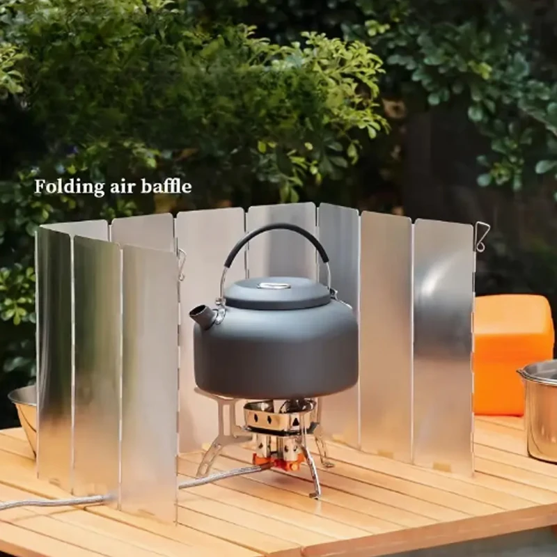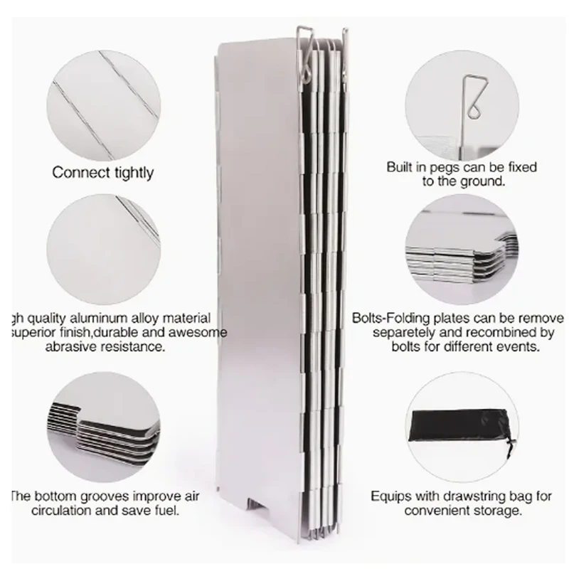 This foldable aluminum alloy windbreak is designed to provide effective protection for your outdoor camping stove against wind, ensuring efficient cooking in various weather conditions. Its lightweight and portable design makes it an essential accessory for camping enthusiasts.