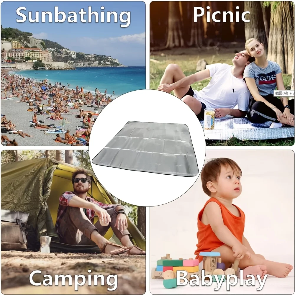 This outdoor double-sided moisture-proof aluminum foil foam pad is perfect for various outdoor activities such as picnics and camping. It offers excellent insulation and waterproofing, ensuring a comfortable experience in nature.