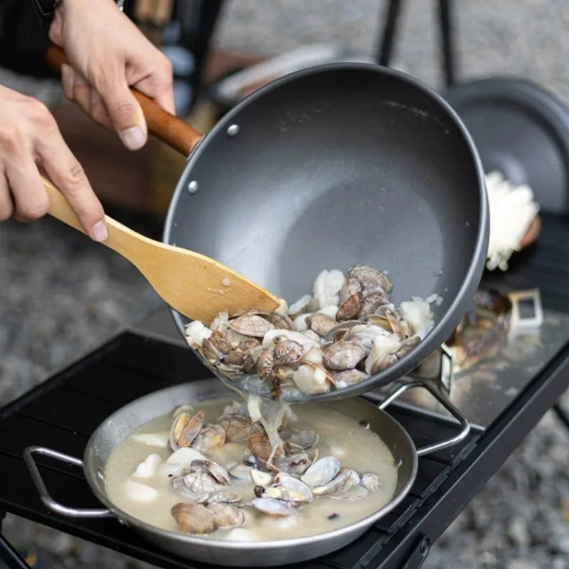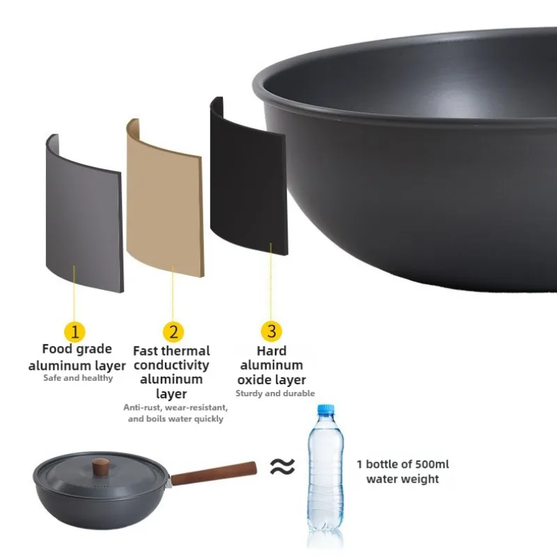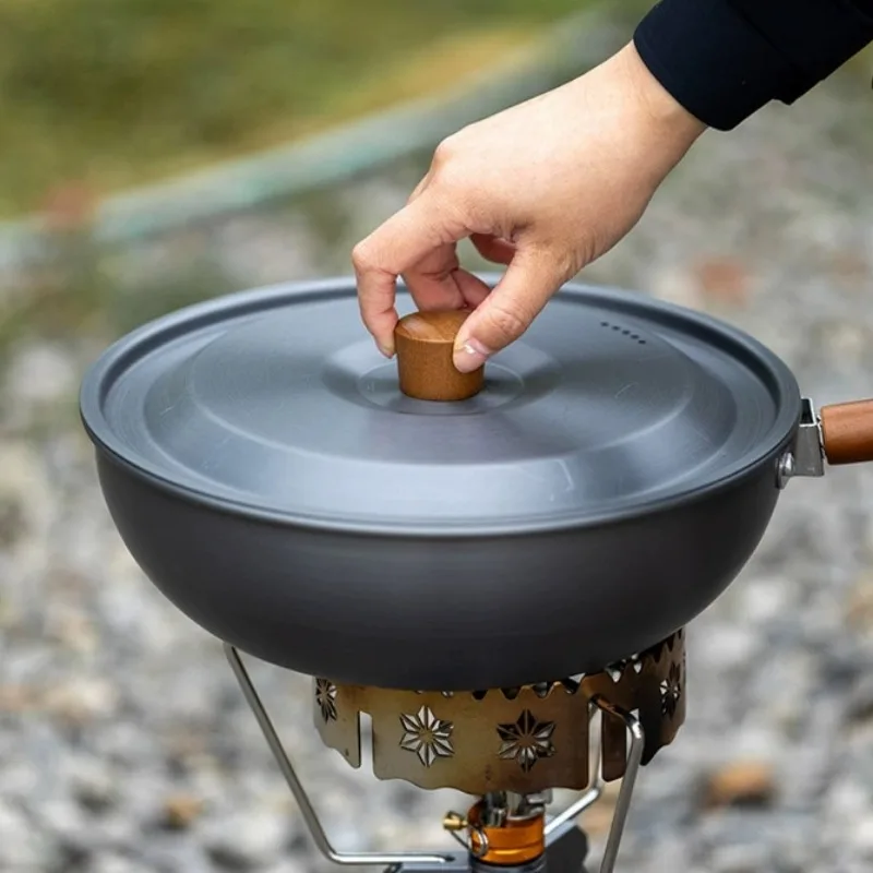 This lightweight aluminum alloy frying pan is designed for outdoor cooking, making it an ideal companion for camping, picnics, and hiking trips. Its non-stick surface ensures easy cooking and cleaning, while the folding handle allows for convenient storage and portability.