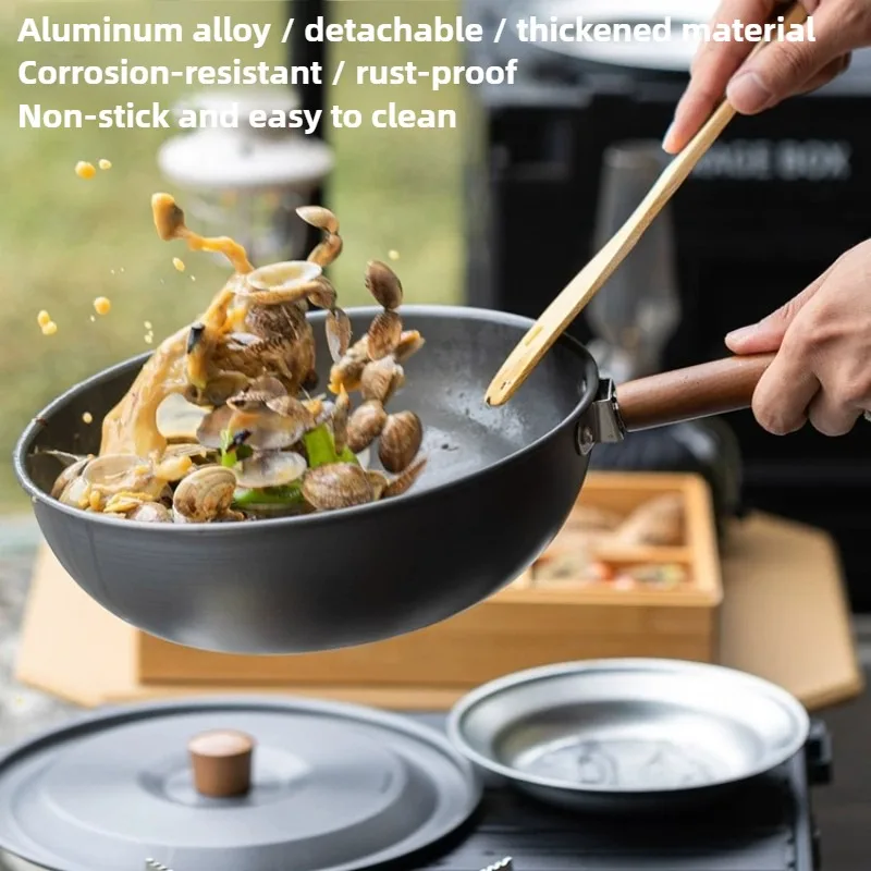 Outdoor Frying Pan Aluminum Alloy Non Stick Pan Folding Handle Camping Pot
