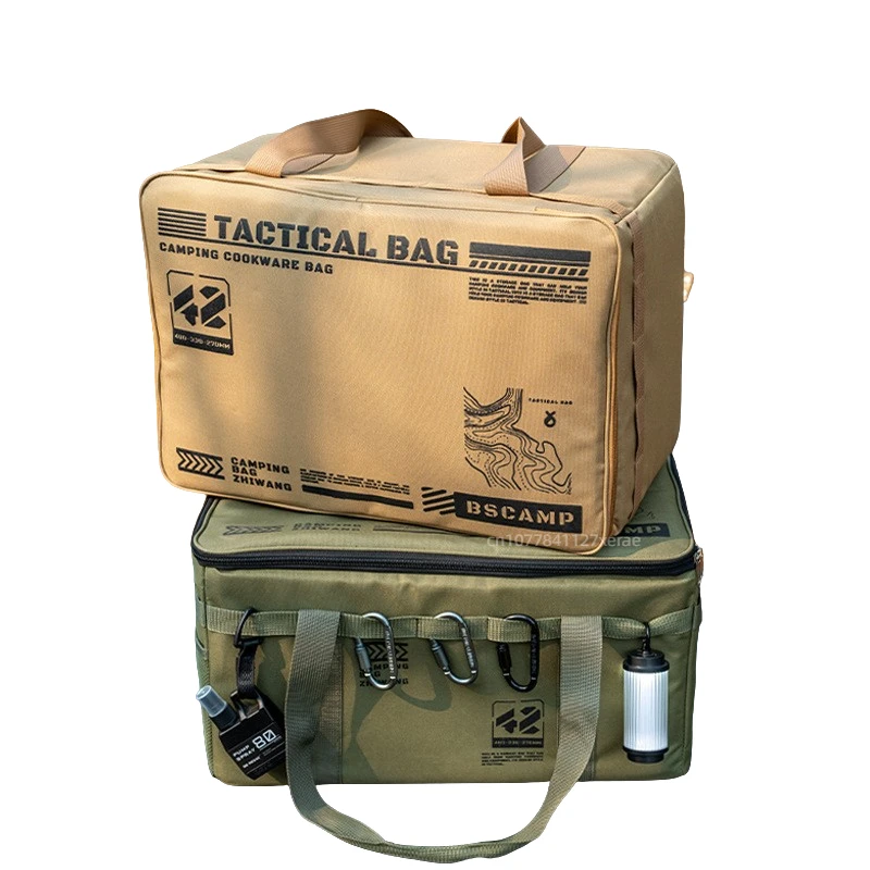 This Outdoor Large Capacity Waterproof Tactical Storage Bag is designed for camping and picnics, providing ample space for cookware, cutlery, and other outdoor essentials. Its tactical design features multiple hanging points for versatile use and easy access to your gear.