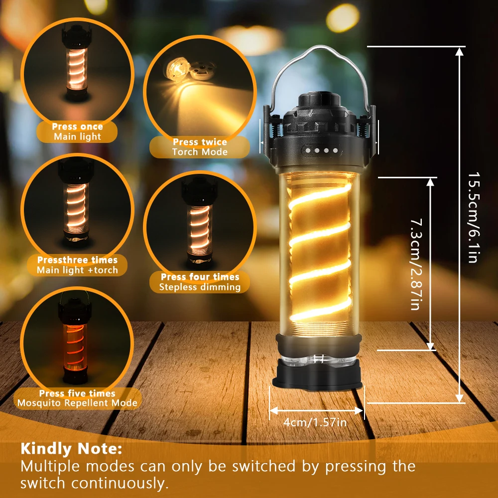 Outdoor LED Camping Light with Tripod is a versatile and portable lighting solution designed for camping and outdoor activities. It features five different lighting modes and is USB rechargeable, making it an essential tool for emergencies and outdoor adventures. The warm lamp provides a cozy atmosphere, while the tripod allows for easy setup and stability.