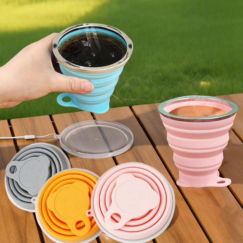 Outdoors Silicone Folding Cup with Hanging Hole Portable Travel Coffee Mug