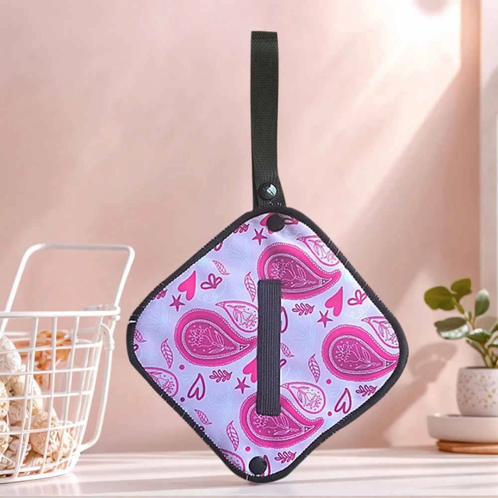 - Usage Method: Features a gray absorbent side and a waterproof back, with an elastic handle for easy attachment to bags.