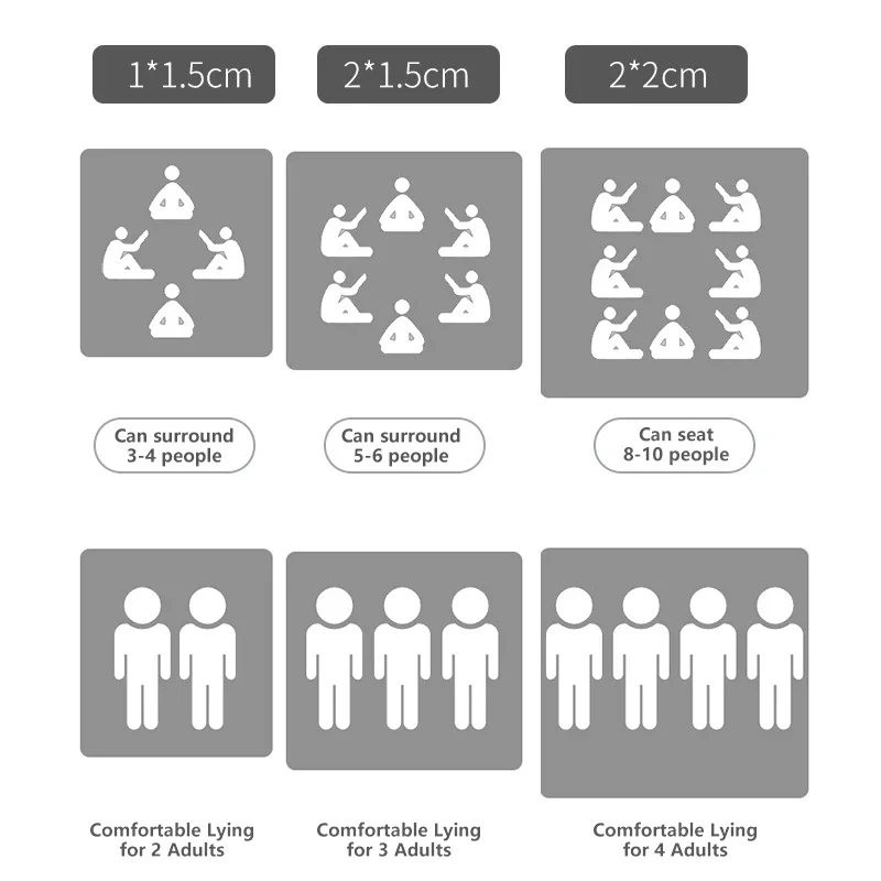 • Size options: Approximately 200 x 300 cm, 200 x 150 cm, 200 x 200 cm, 100 x 150 cm