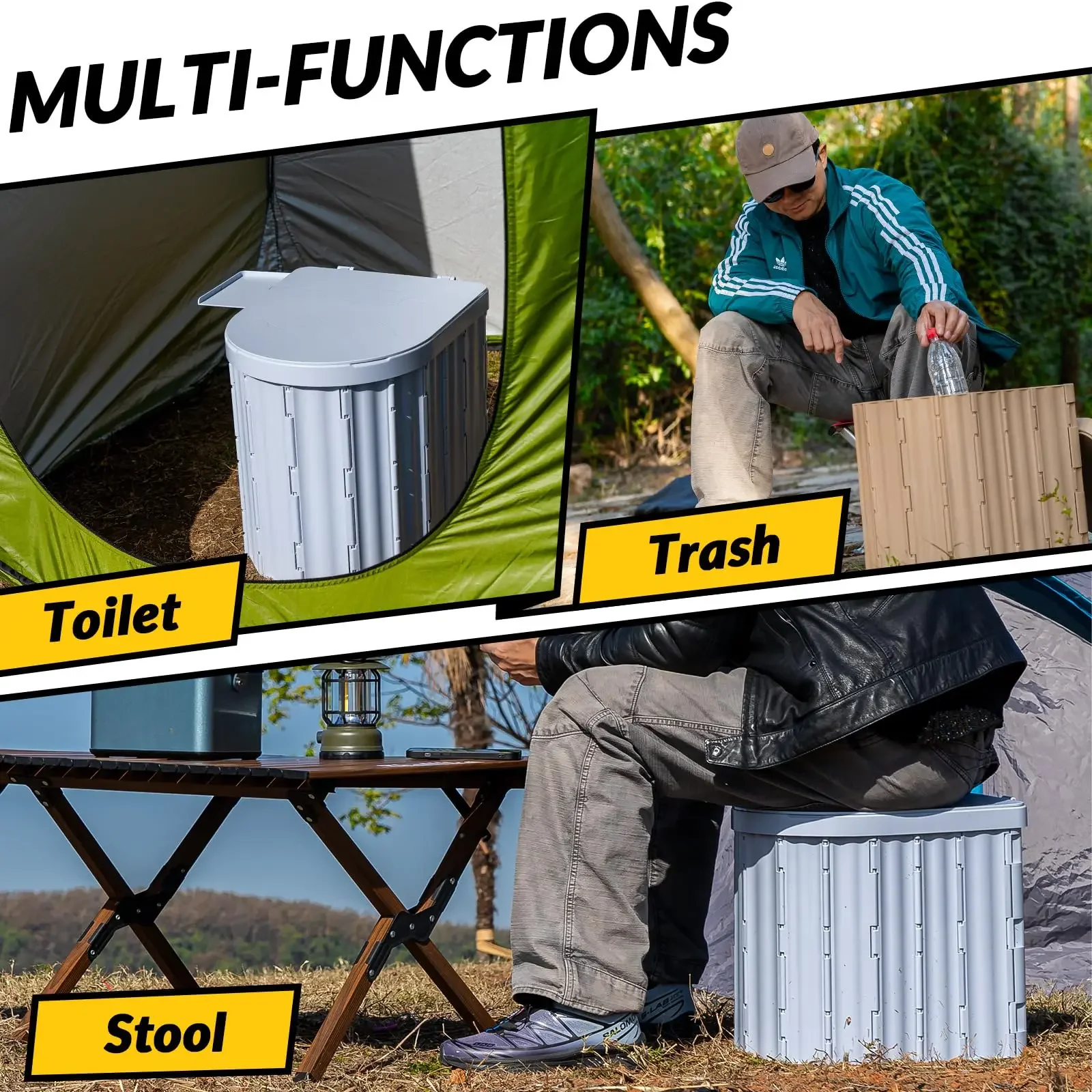 • Versatile use as a toilet, trash can, stool, or vomiting bucket, suitable for various outdoor activities.