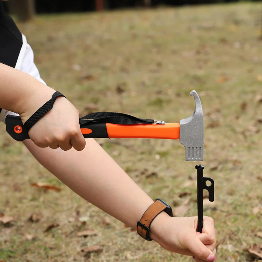 Portable Carbon Steel Camping Tent Hammer Peg Stake Puller Mallet Awning Canopy Tool