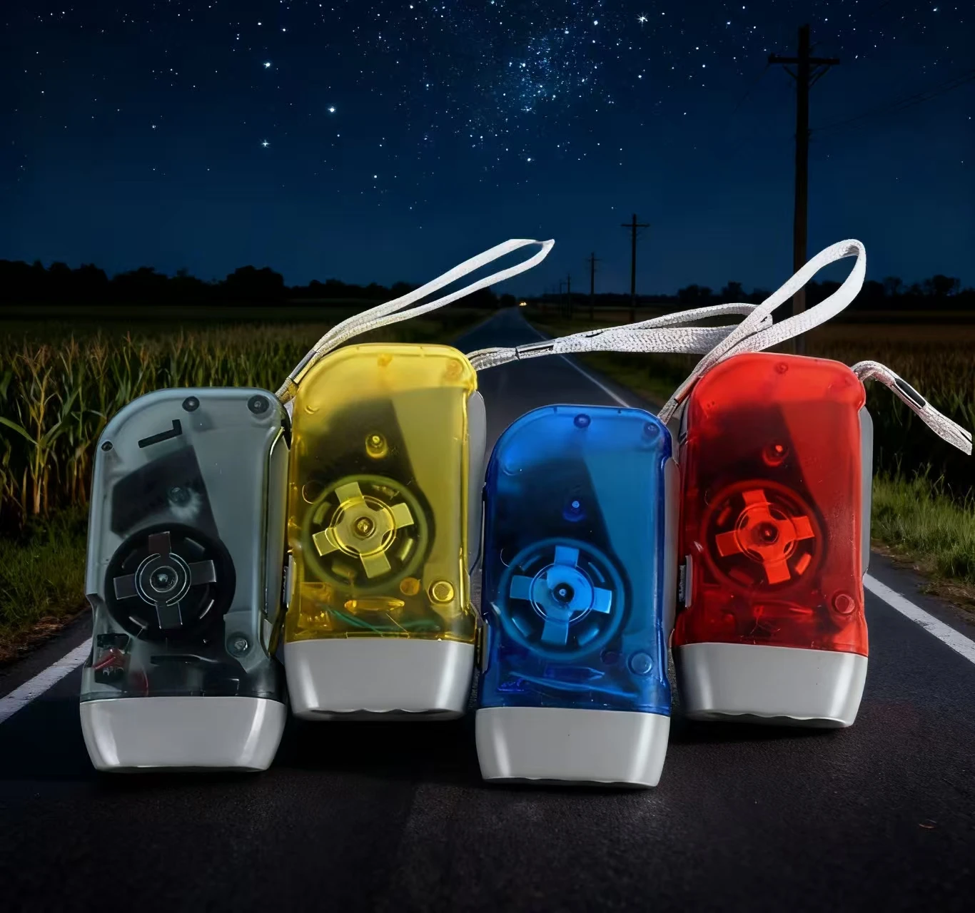 • Self-powered: No batteries required, just crank to generate power.