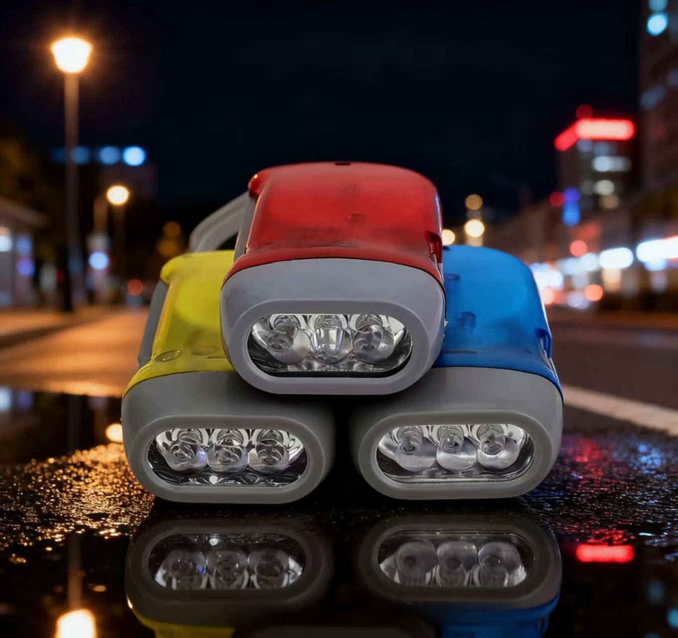This portable hand pressing LED night flashlight is designed for outdoor activities such as camping and riding. It features a self-powered dynamo crank that allows you to generate power manually, ensuring you have light whenever you need it.