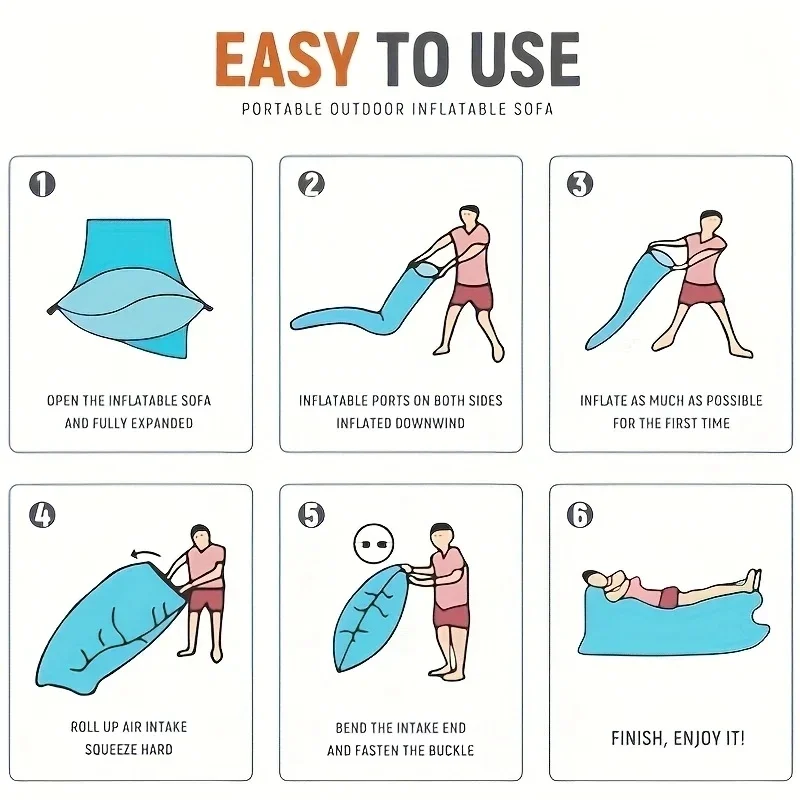 This inflatable lounge chair is perfect for outdoor enthusiasts looking for comfort and convenience. It inflates in just 5 seconds without any tools, making it an ideal companion for music festivals, camping trips, and beach outings. Enjoy relaxation wherever you go with this easy-to-use mobile sofa.