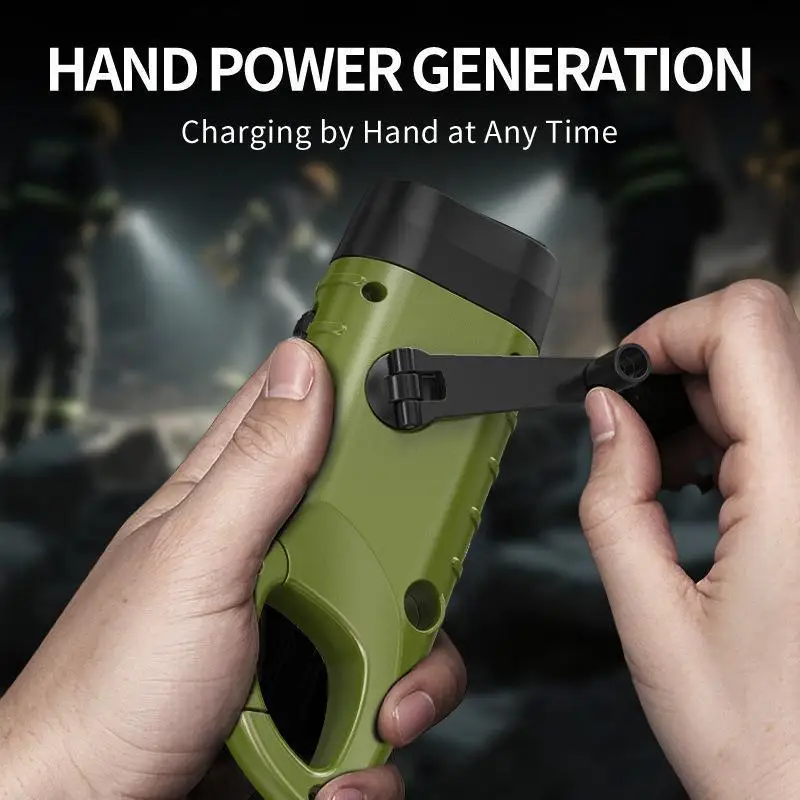 This portable LED flashlight is perfect for outdoor activities, providing dependable lighting for camping, hiking, and emergency situations. With both hand-crank and solar charging options, it ensures you have a reliable power source wherever you are. Its lightweight design makes it easy to carry, making it an essential tool for any outdoor enthusiast.