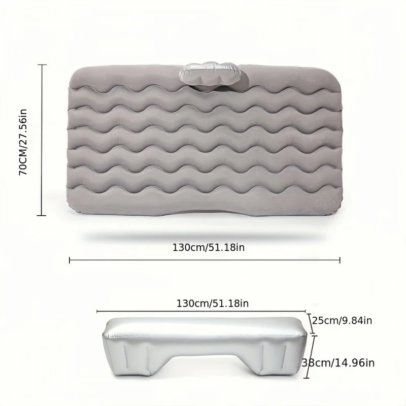 This inflatable travel mattress is designed for outdoor adventures and camping trips. It serves as a comfortable car back seat cushion and can be used in various settings, including indoors and outdoors. Its compact and portable design makes it easy to store and transport.