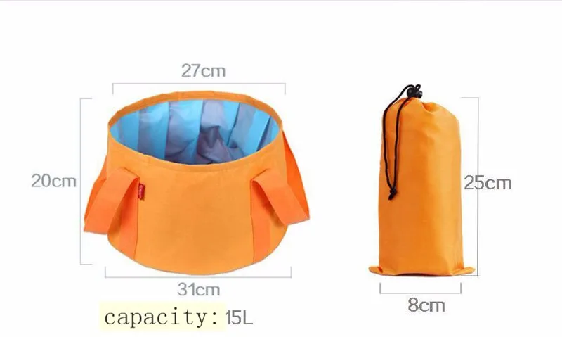 This portable outdoor travel foldable camping wash basin is designed for convenience and practicality. With a capacity of approximately 15 liters, it is perfect for washing vegetables, faces, or other items while traveling, hiking, or camping.