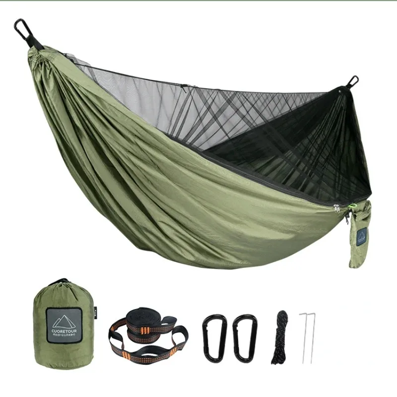 This hammock with a mosquito net is designed for outdoor and indoor use, providing a comfortable and safe sleeping experience. It is lightweight and easy to set up, making it perfect for camping or relaxing in your backyard.