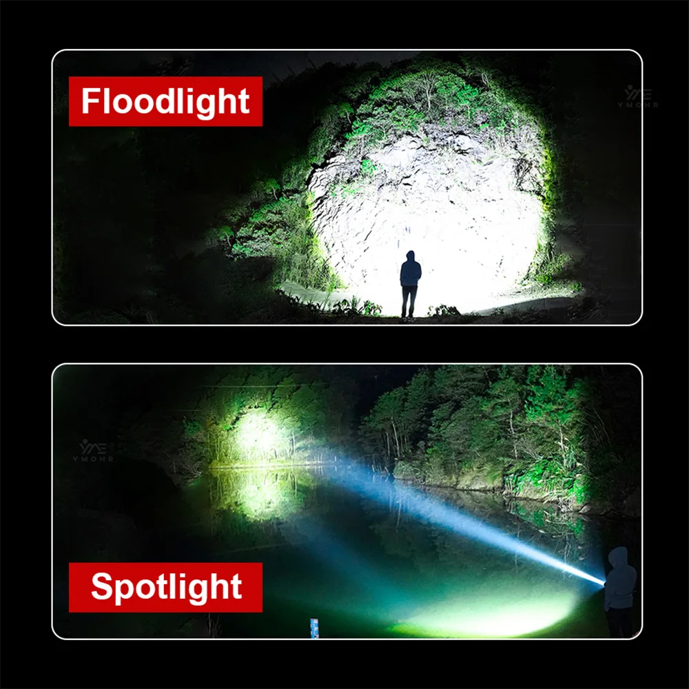 XHP50 Super Bright LED Double Head Flashlight Waterproof Rechargeable Torch Light