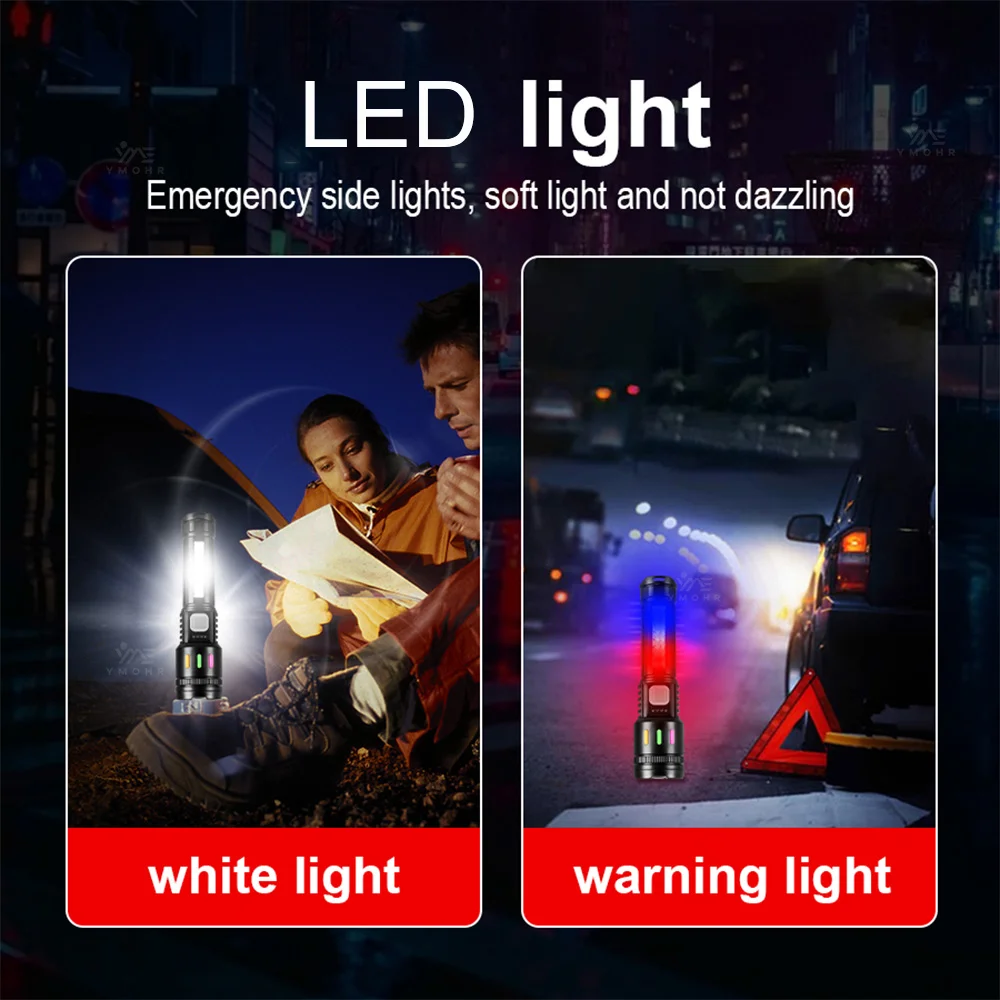 This powerful camping torch is a rechargeable LED flashlight designed for outdoor enthusiasts. With its super bright output and lightweight design, it is perfect for climbing, hiking, and camping adventures. The flashlight features a digital power display, adjustable focal length, and multiple brightness modes to suit various needs.