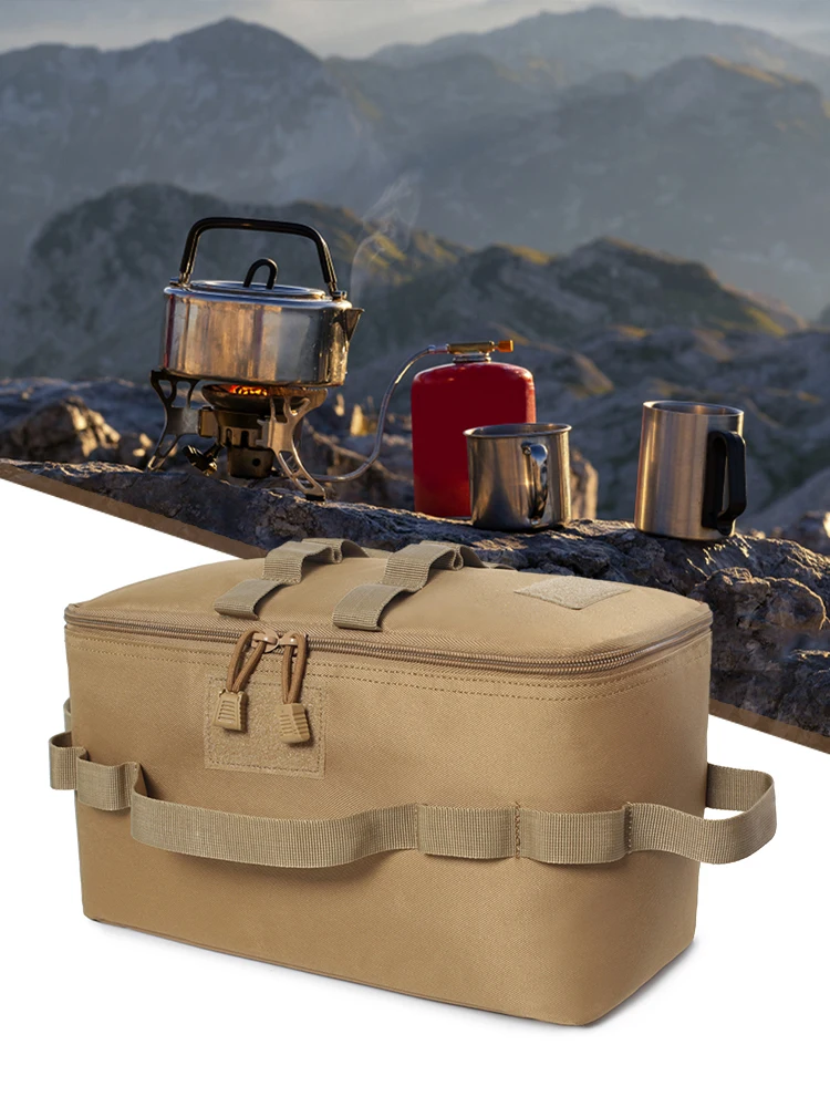 This multifunctional gas stove canister pot carry bag is designed for outdoor enthusiasts. Made from durable 600D Oxford cloth, it provides ample storage for your camping essentials, ensuring you have everything you need for your adventures.