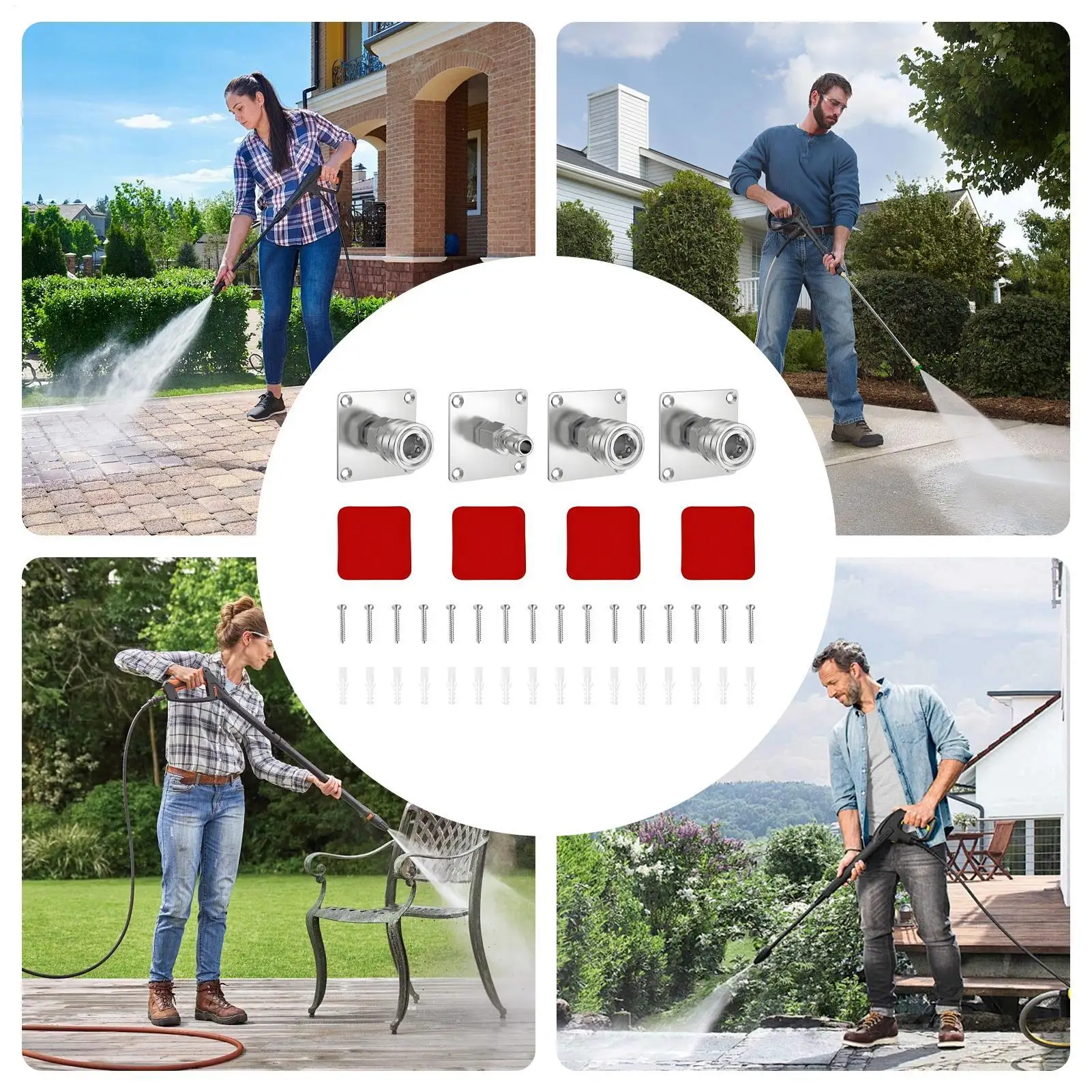 Organize your pressure washing tools efficiently with this stainless steel pressure washer mount. Designed for wall mounting, it helps save space in your garage or garden while allowing for quick setup with its easy connect system. Ideal for outdoor cleaning and workshops, this mount is a practical addition to any car wash station.