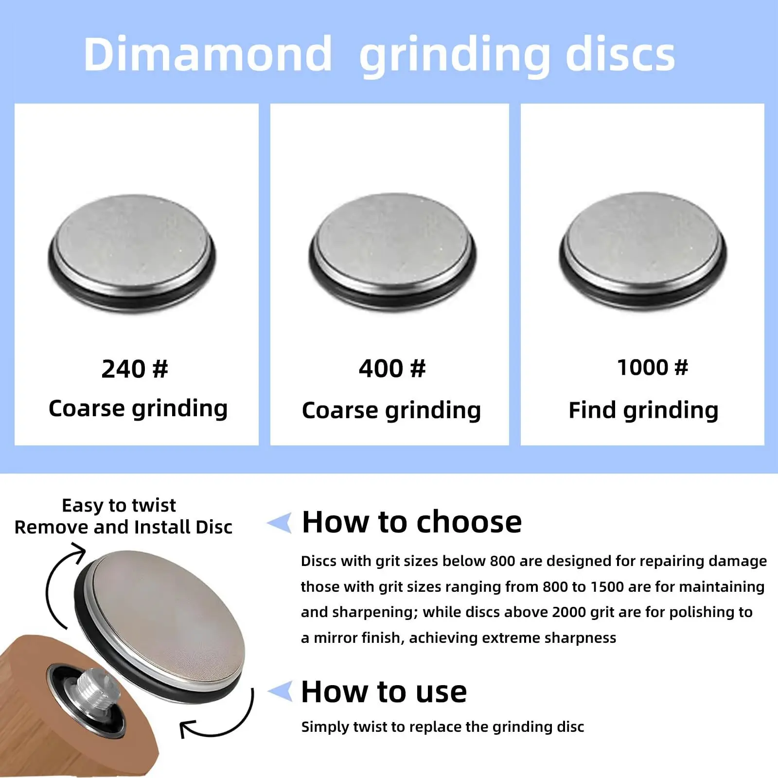 Rolling Knife Sharpener Accessories with Diamond and Ceramic Discs for Kitchen Use