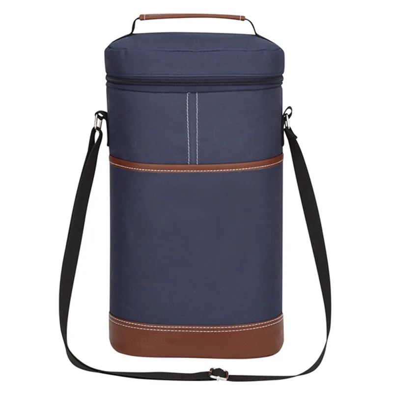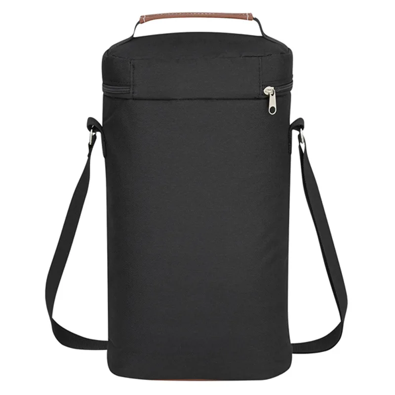 This insulated wine cooler bag is designed for outdoor enthusiasts who enjoy traveling with their favorite beverages. It can hold up to two bottles, making it perfect for picnics, beach trips, or any outdoor gathering.