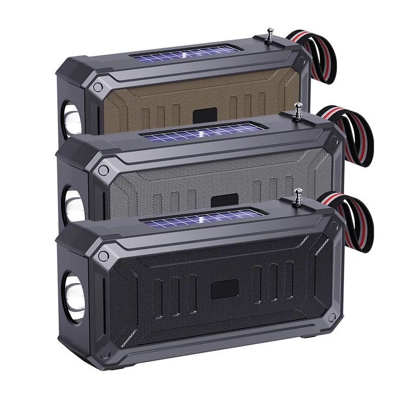 Solar Wireless Bluetooth Speaker Dual Solar Power Rechargeable Flashlight FM Radio