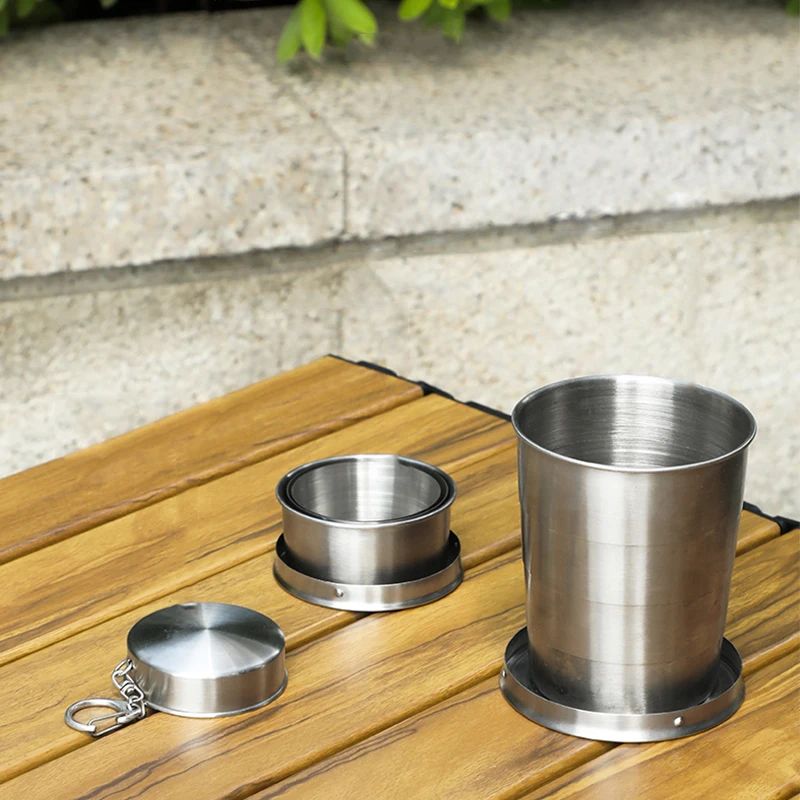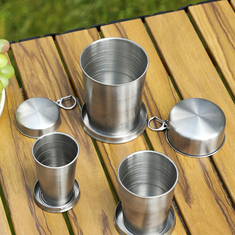 Stainless Steel Folding Cup Camping Cookware Telescopic Cup Utensils Portable
