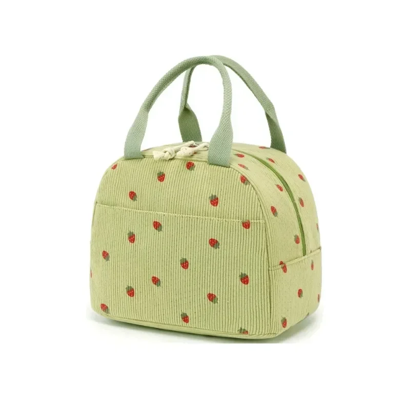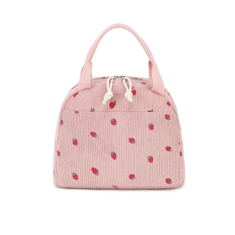The Strawberry Corduroy Insulated Lunch Bag is designed for convenience and functionality, making it perfect for school, work, picnics, and outdoor activities. Its thermal insulation keeps your food at the desired temperature, ensuring freshness and taste wherever you go.