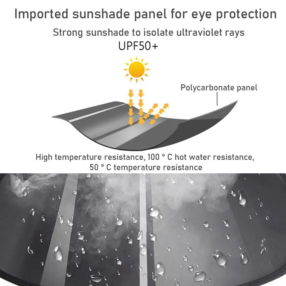 Introducing the Summer Sunshade Cap, a foldable and portable anti-UV visor designed for outdoor sports. This sun hat provides excellent solar protection and features a full face shield to keep you safe from harmful sun rays while enjoying your favorite activities.
