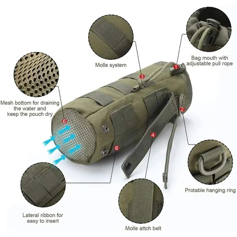 Tactical Molle Water Bottle Bag Pouch Holder for Outdoor Travel Hiking