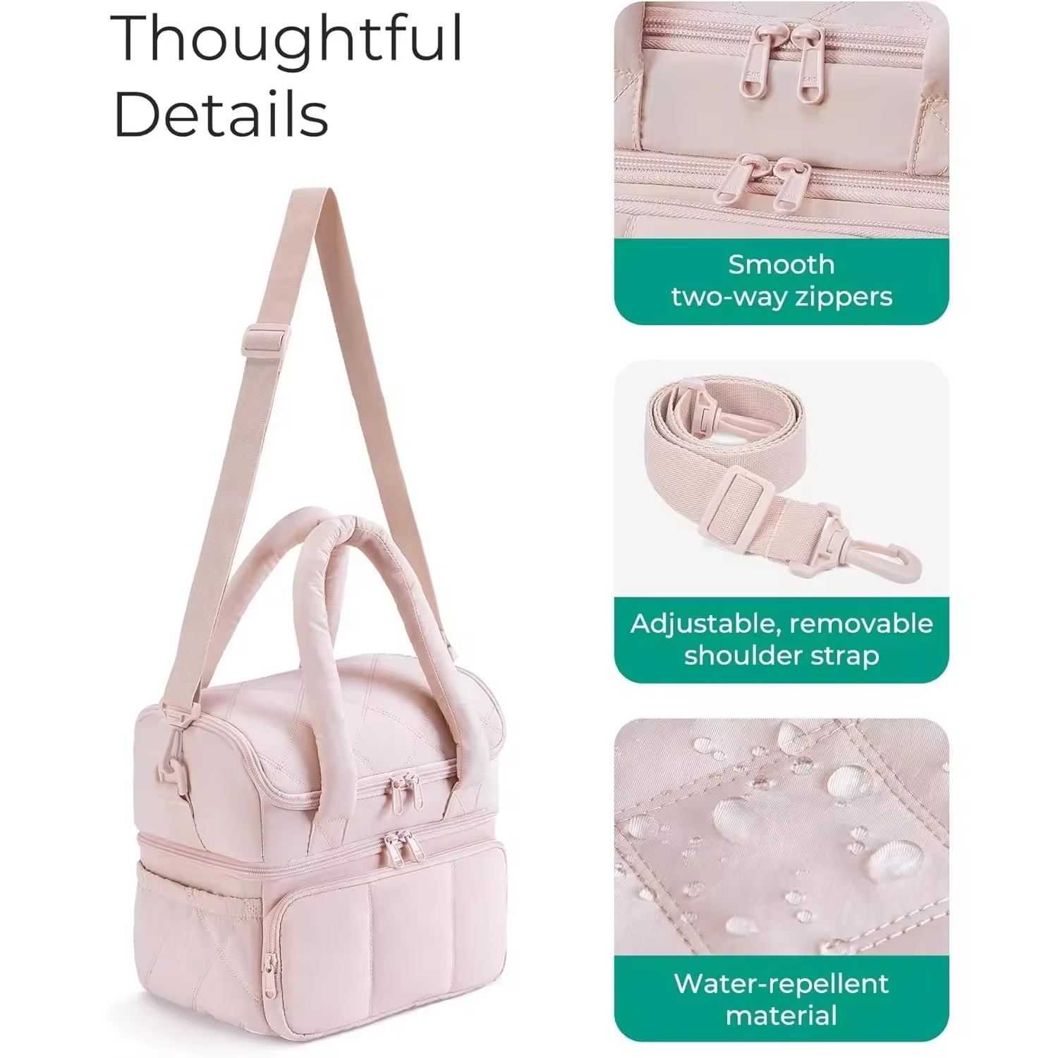 This double-layer insulated lunch bag is designed for convenience and practicality, making it perfect for work, picnics, travel, and camping. Its leakproof design ensures that your food stays secure and fresh, while the thermal insulation helps maintain the temperature of your meals.