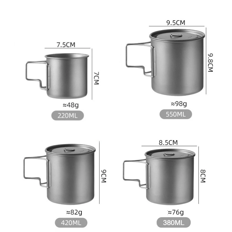 Titanium Camping Cup Lightweight Portable 220380420550ml Ultralight Folding Handle