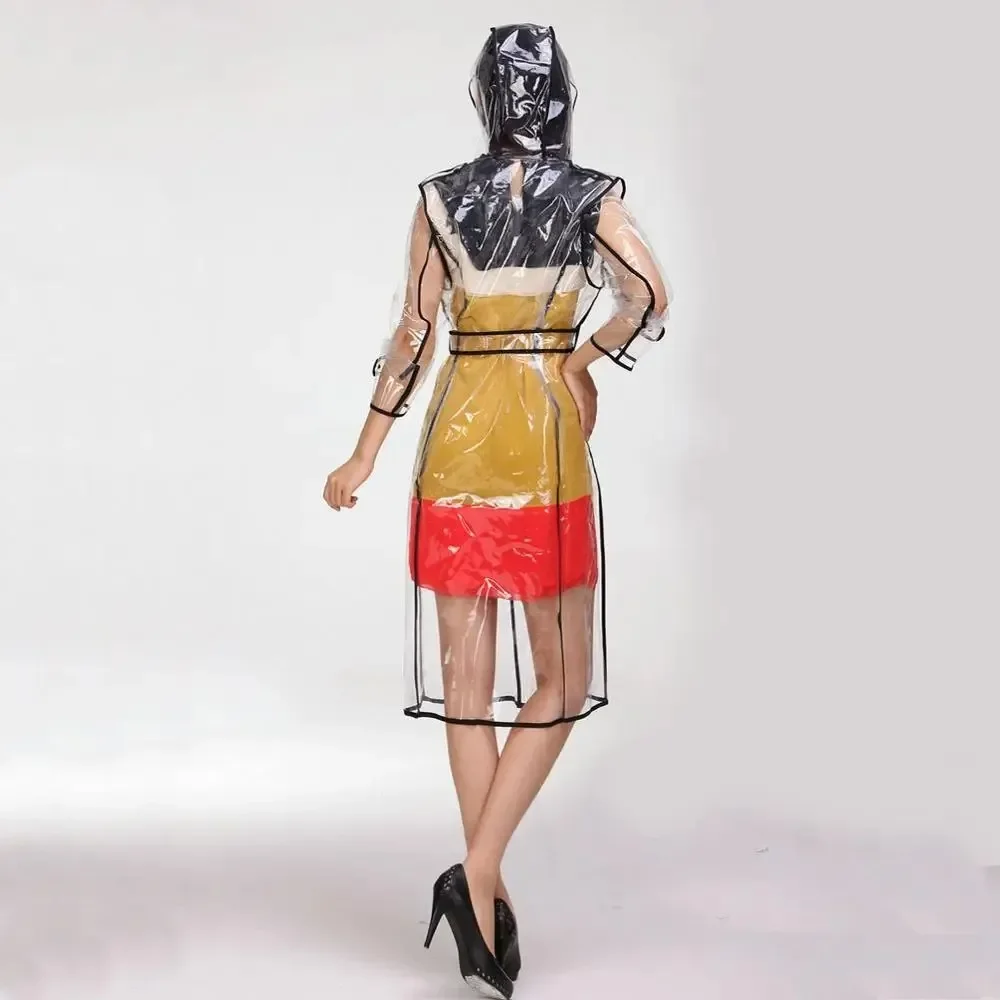 Transparent Plastic Long Raincoats Waterproof Fashion Hooded Jackets Coats