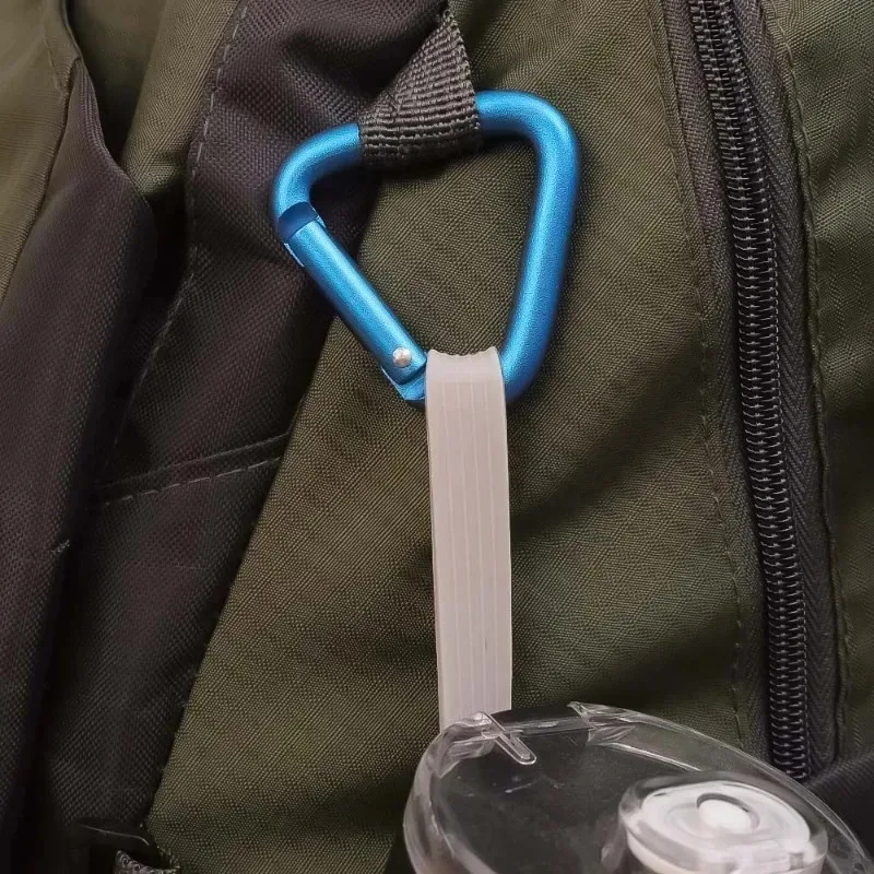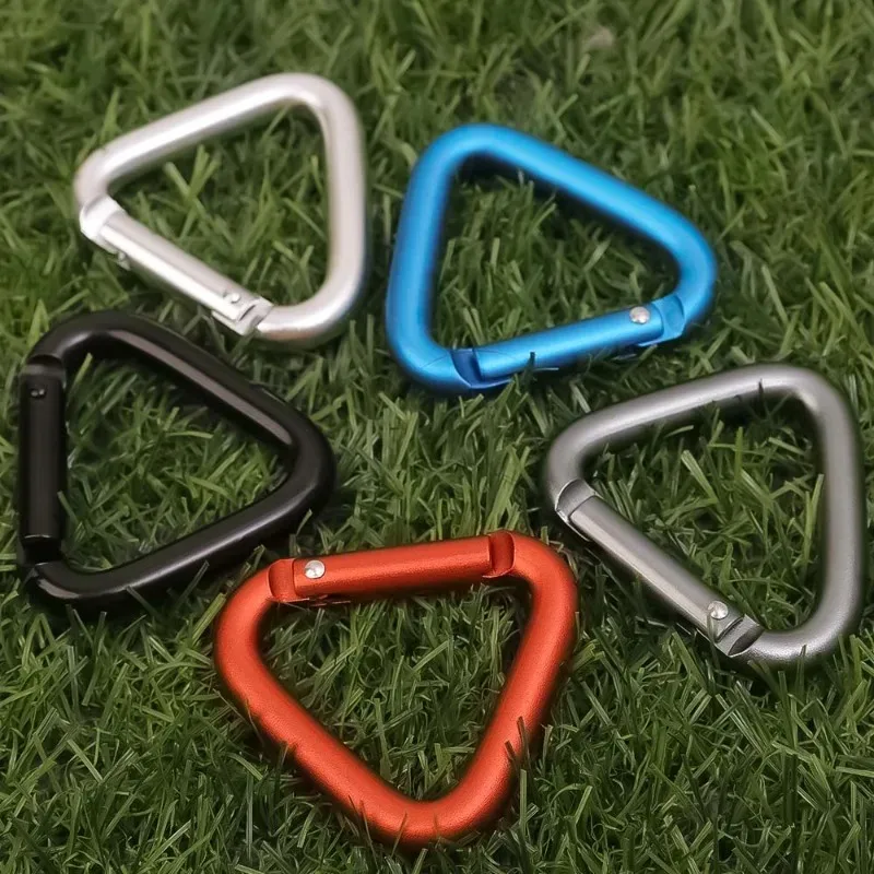 This triangular colorful carabiner is a versatile accessory perfect for outdoor activities such as camping and hiking. It can be used to securely attach items like backpacks, keys, and water bottles, making it an essential tool for adventurers and everyday users alike.