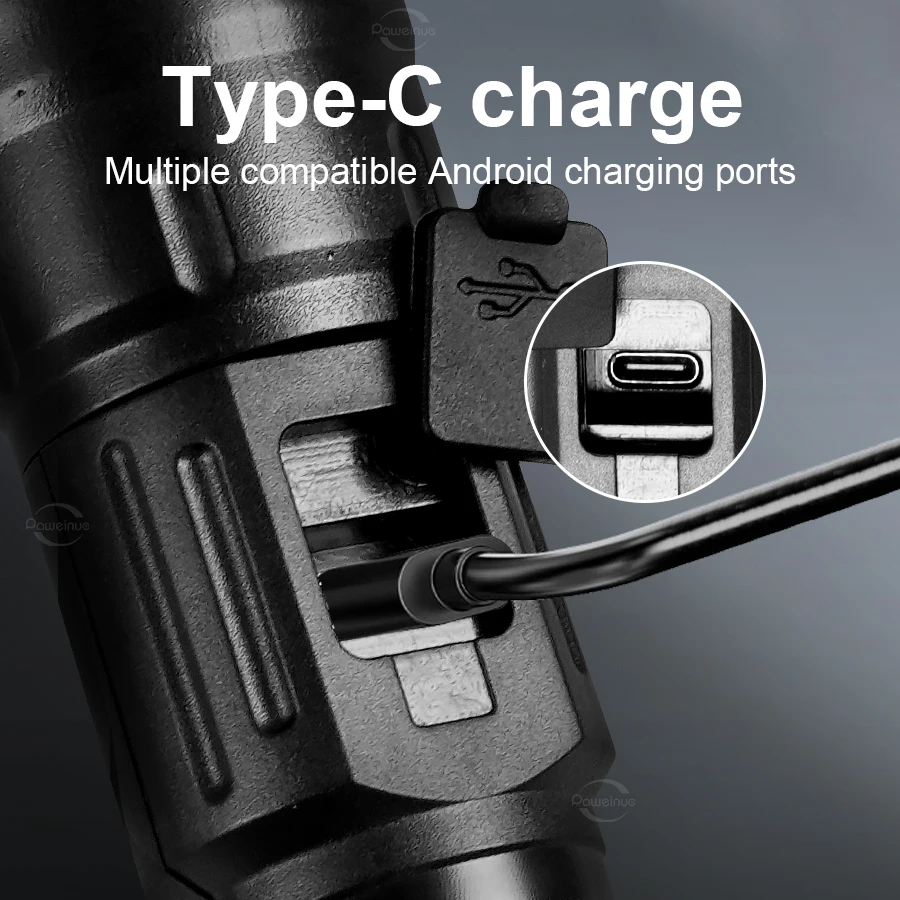 TYPE-C Rechargeable LED Flashlight Waterproof Portable Handheld Torch for Camping Hiking