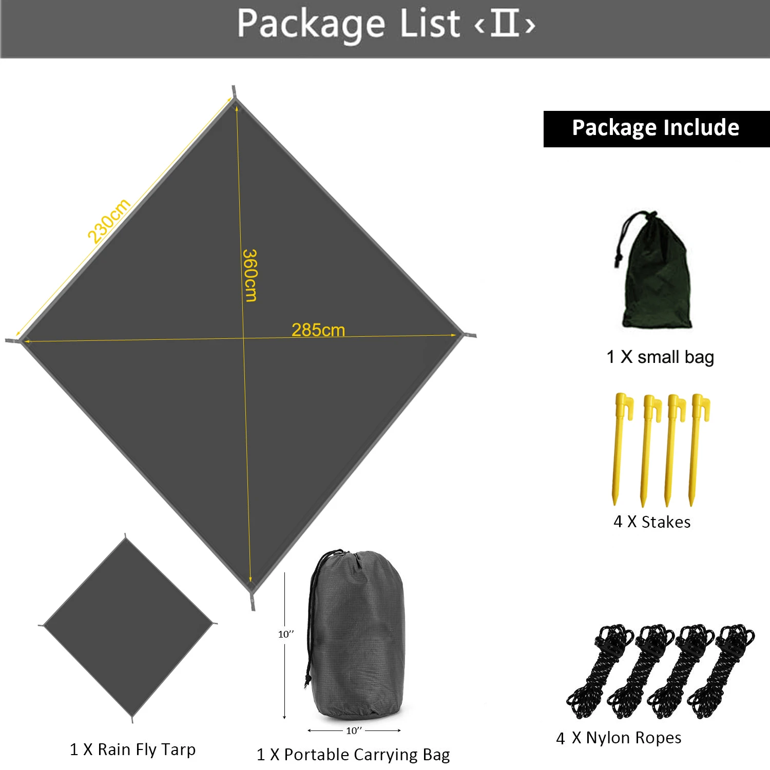 • Weather Protection: The hammock rain fly is made with a silver-coated and PU2000mm waterproof material, offering reliable protection from rain, sun, and wind.