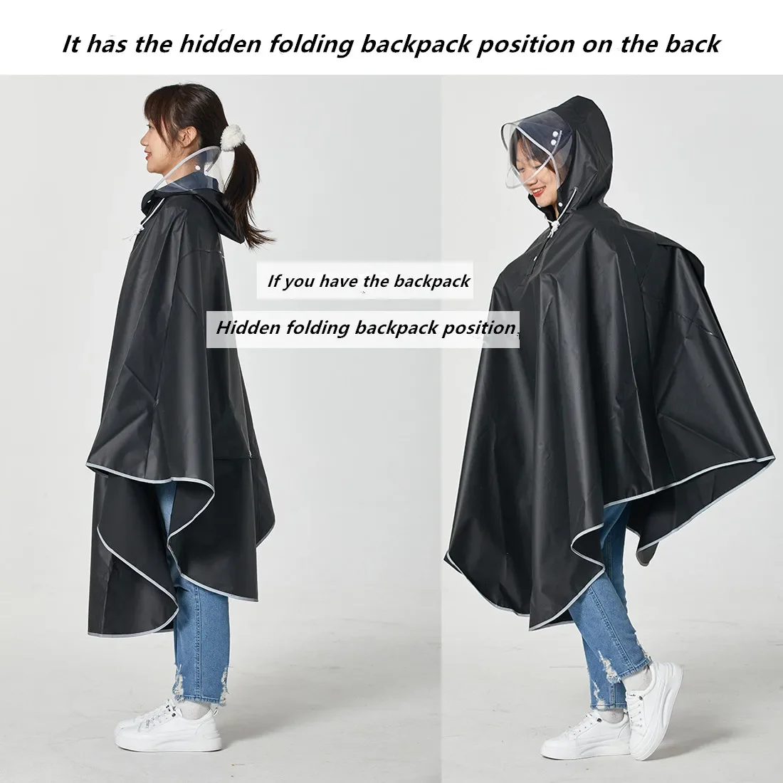 Unisex Waterproof Bike Rain Poncho Lightweight Reusable Hooded Cape Reflective Stripes
