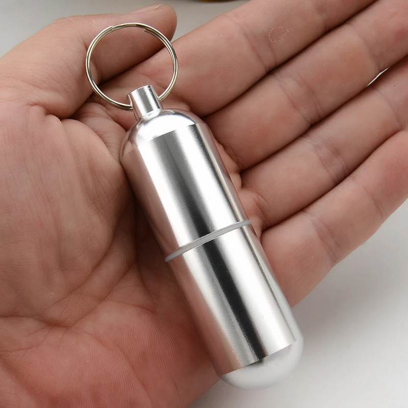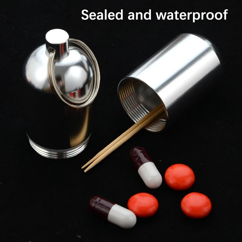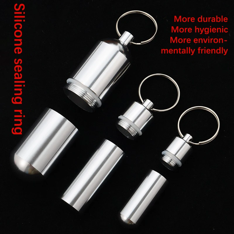 This multifunctional aluminum pill box is designed for travel and outdoor activities. It is lightweight, durable, and waterproof, making it an ideal companion for camping, hiking, or everyday use. The sleek design allows it to easily attach to your keychain, ensuring you always have your essentials on hand.