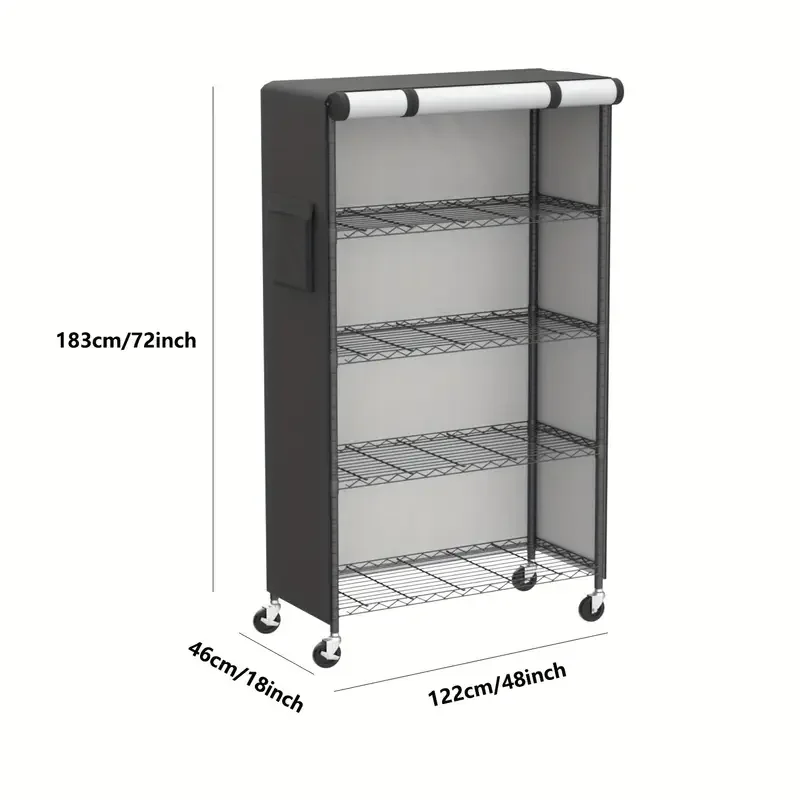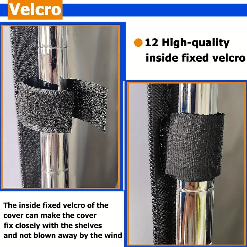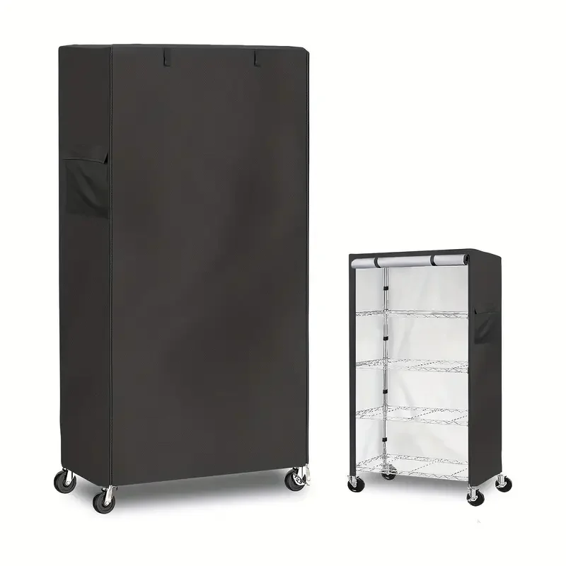 This heavy-duty dustproof storage cover is designed to protect your outdoor wire racks from the elements. It features a durable zipper for easy access and a secure fit, ensuring your items remain safe and clean.