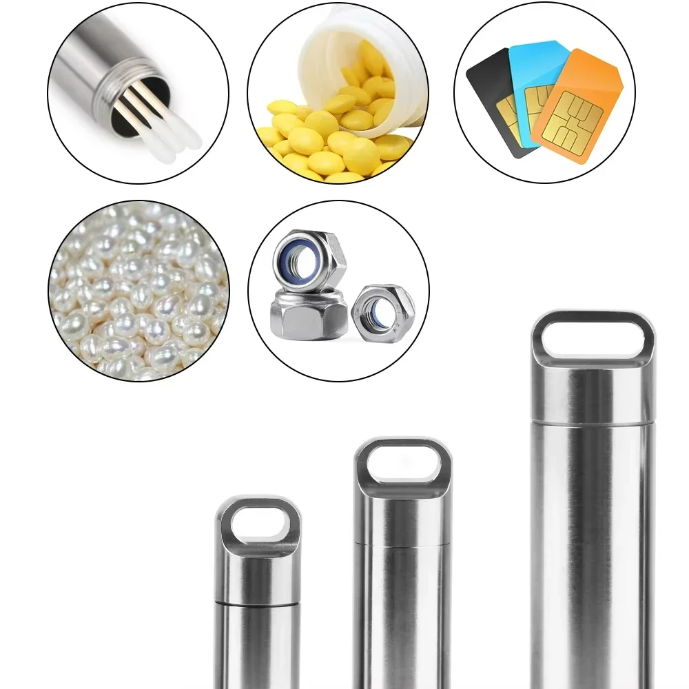 Waterproof Portable Stainless Steel Pill Storage Box with Key Chain