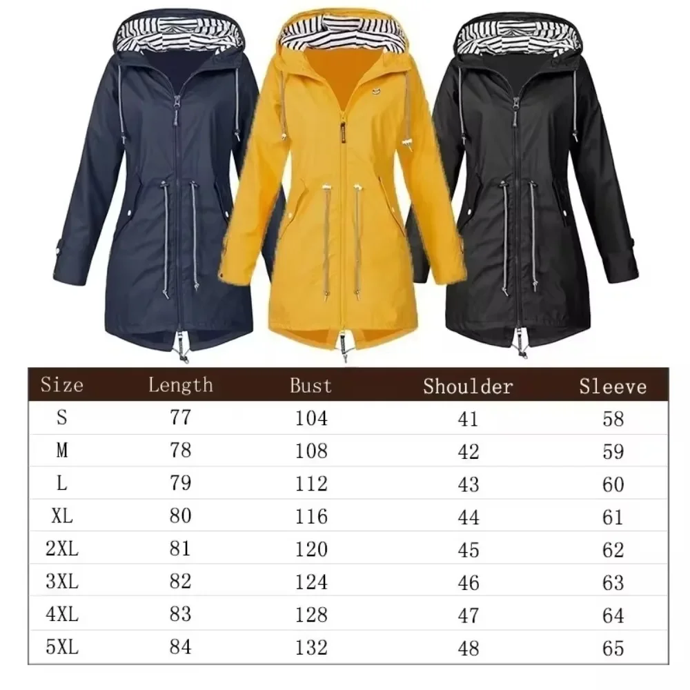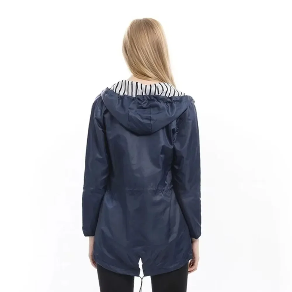 Waterproof Raincoat Casual Basic Outdoors Trench Lightweight Drawstring Jacket