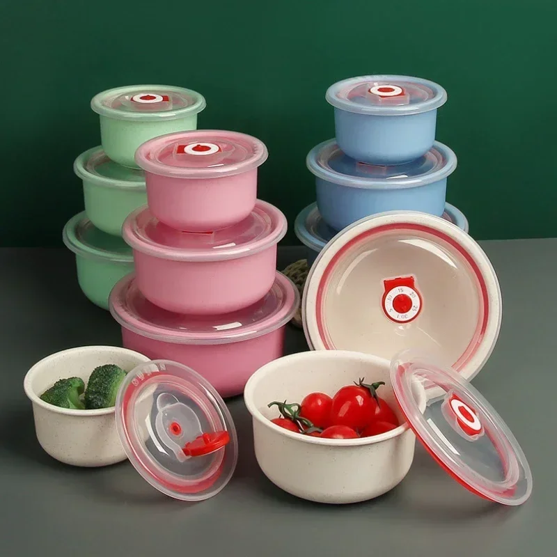 Wheat Straw Bowl Set Household Refrigerator Storage Bowl Plastic Sealed Fresh-keeping