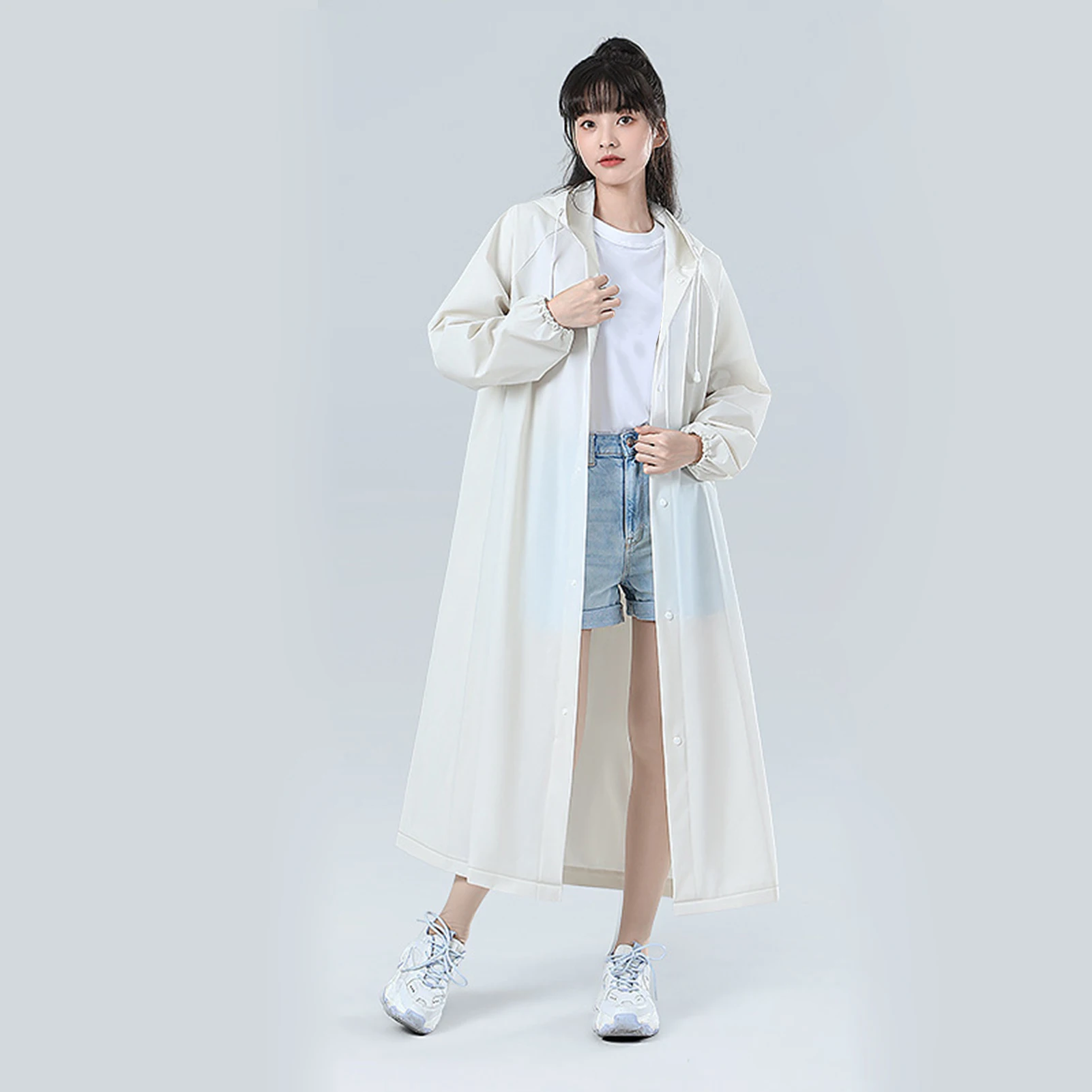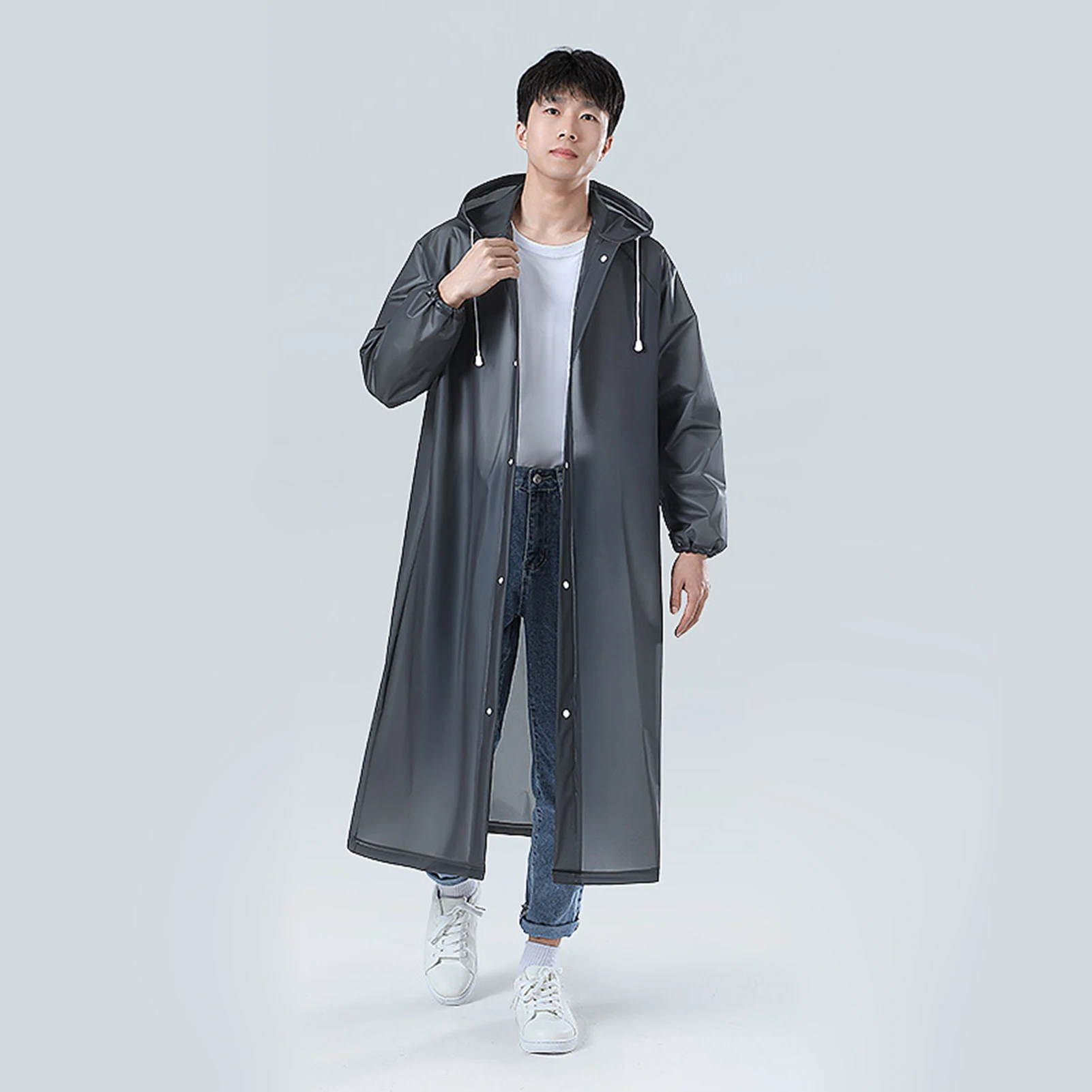 This reusable hooded raincoat is designed for both men and women, making it a versatile choice for outdoor activities such as travel, fishing, biking, and hiking. Made from waterproof EVA material, it provides reliable protection against rain while being lightweight and easy to carry.