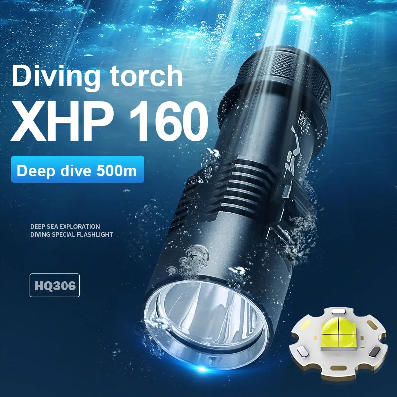 XHP 160 Professional Diving Flashlight High Power LED Waterproof Underwater Light